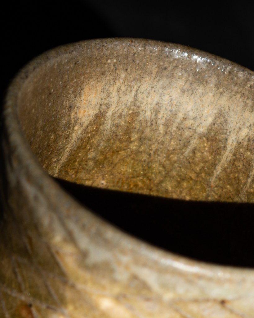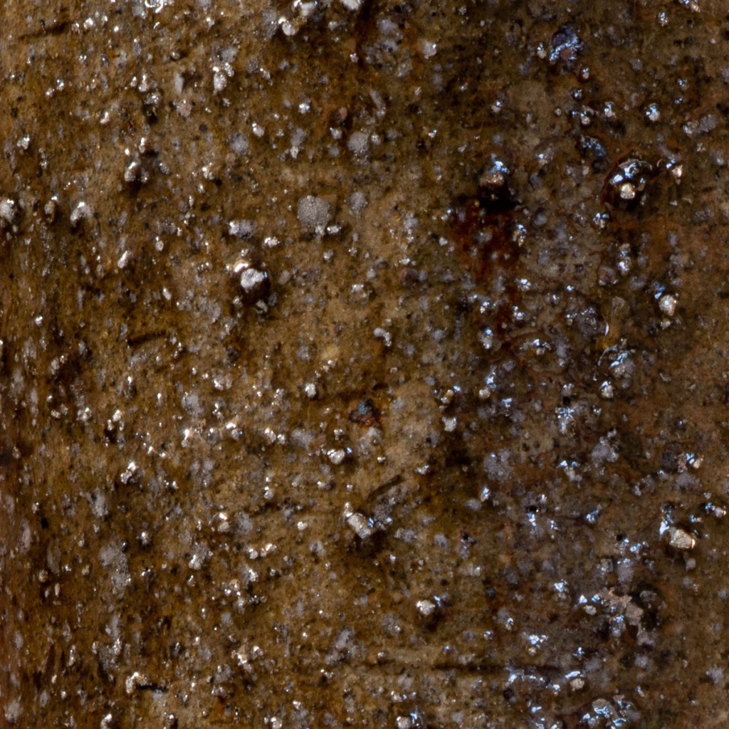 The second was poured through a 30 mesh sieve. In my experience this is the minimum work and maximum particle size for functional ware. The melt is good enough that the small unmelted bits are beneath a mostly smooth glaze.