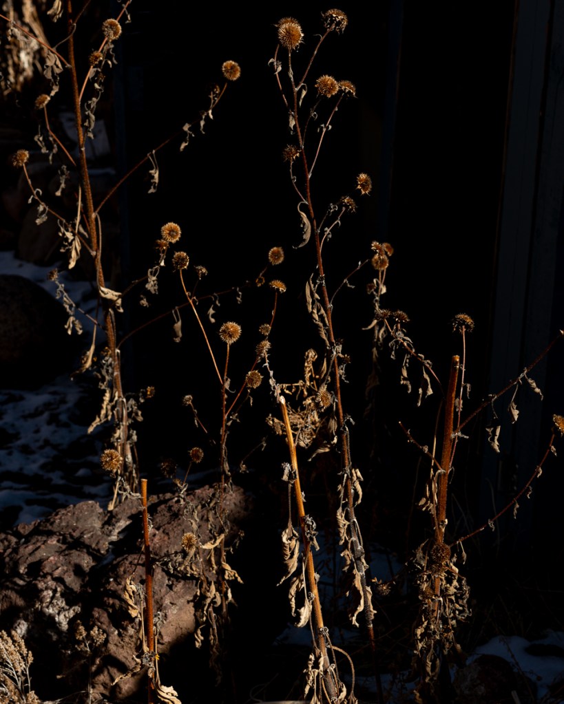 Leaves and other debris provide habitats for over-wintering animals, insects, bacteria and mycelium vital to our eco-system. Seed heads standing high above the frozen ground preserve food for birds during the cold months. The stalks provide winter beauty as sculptural structures that stand up and play with the low sun’s shadows and snow.