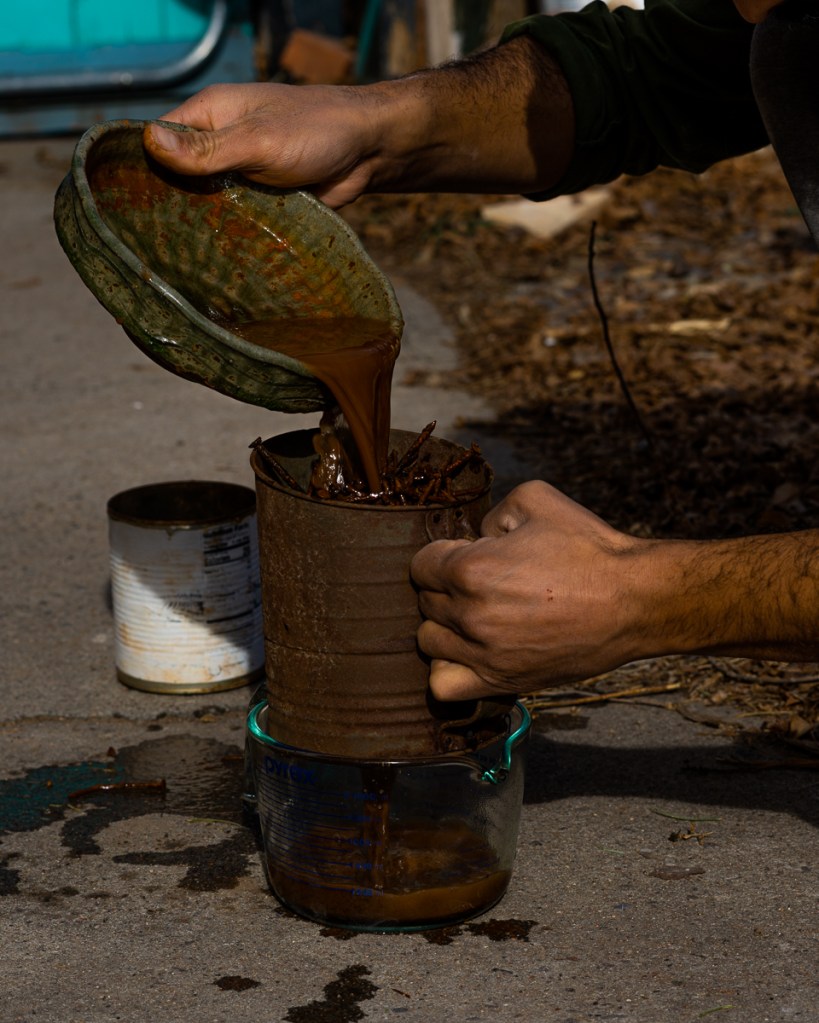 Next the material is poured through a window screen, and lastly through a 40 mesh sieve. Many potters prefer a finer product, but for my needs 40 is sufficient. To get a finer particle size grinders and mills are used. Anything that doesn’t make it through the screens can be crushed down and screened again, or used elsewhere.