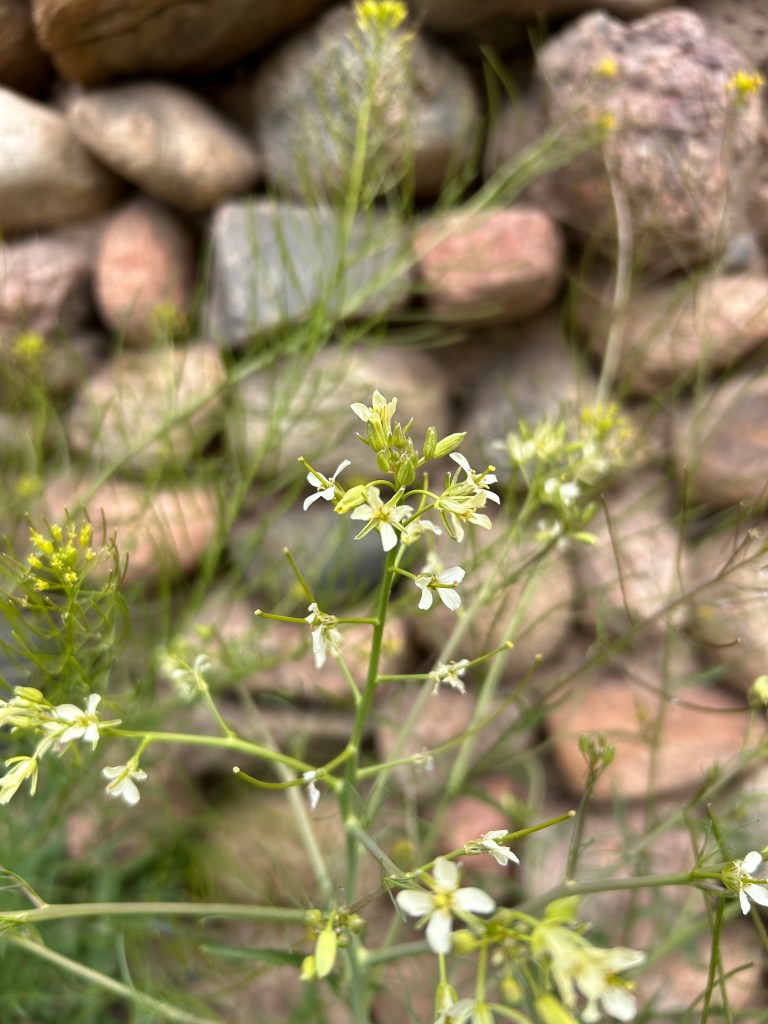 Being pioneer plants, they thrive in disturbed areas. Last year I dug up an area near the sidewalk to add larger stones and start a garden. This year it was full of waist high mustard. Instead of pulling them by the root and starting the cycle of disturbance again, I will cut them at the base when the timing is right. Too early and they will send out more shoots, too late and the seed pods will open, filling the dirt with more seeds. (the dirt is so saturated with the seeds that another plants worth probably isn’t that impactful).